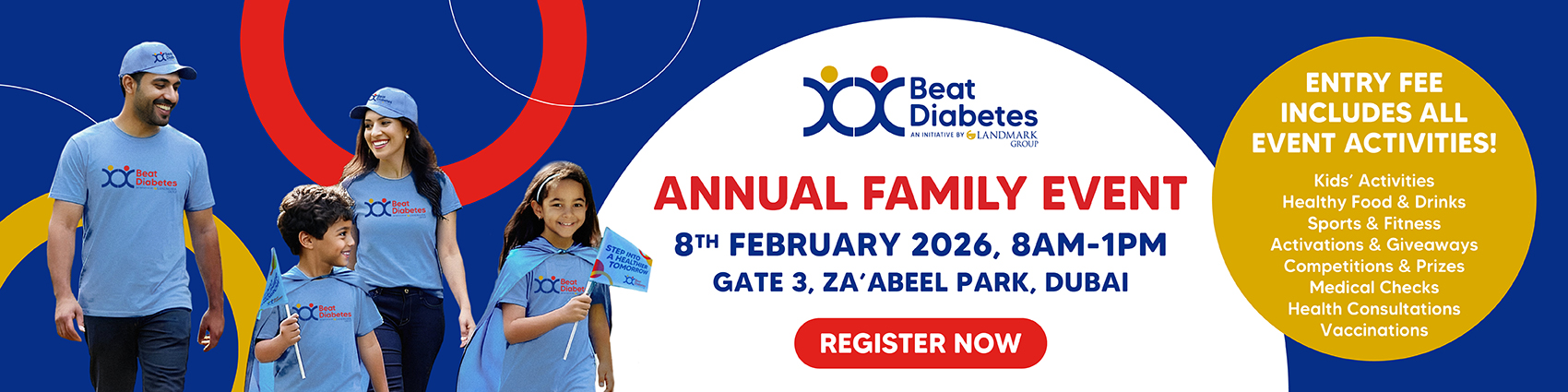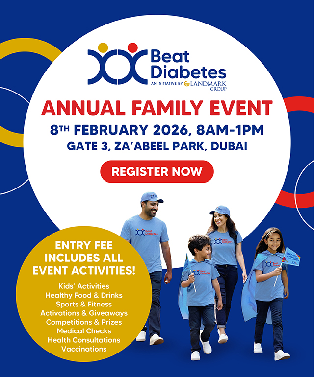 المرض من خلال اتباع ثلاث خطوات بسيطة وهي- تغذى صحيًا وكن فعّالًا وافحص السكري. ولقد أتت المبادرة ثمارها من خلال الأنشطة التي تنظمها على مدار العام، بما في ذلك مسيرات المشي السنوية ومخيمات الفحص وأنشطة جمع التبرعات وأنشطة سوبر كيدز، حيث كان لها أثر في تغيير حياة الملايين من الناس. على مدار السنوات الاثنا عشر الماضية، توسعت المبادرة لتشمل البحرين والكويت وعمان وقطر والمملكة العربية السعودية مما أدى إلى مشاركة أكثر من 120,000 شخص وإطلاق حملات إعلامية بلغ عدد المنضمين إليها أكثر من 30 مليون عضو من الأفراد في مجتمعاتنا.